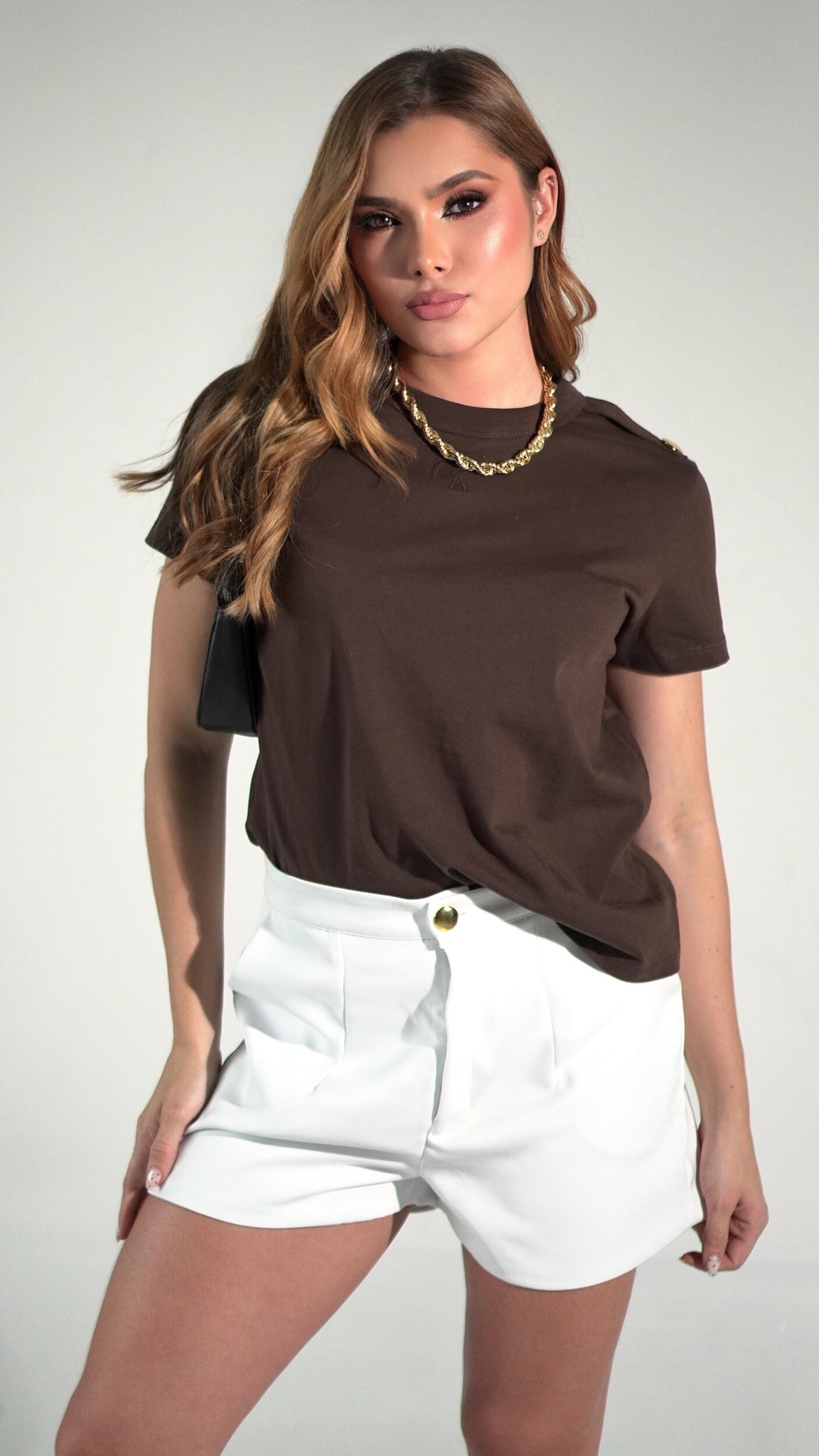 El Diseño: Dos charreteras en los hombros, aseguradas con botones metálicos de alta gama, aportan una estructura arquitectónica que realza la postura.